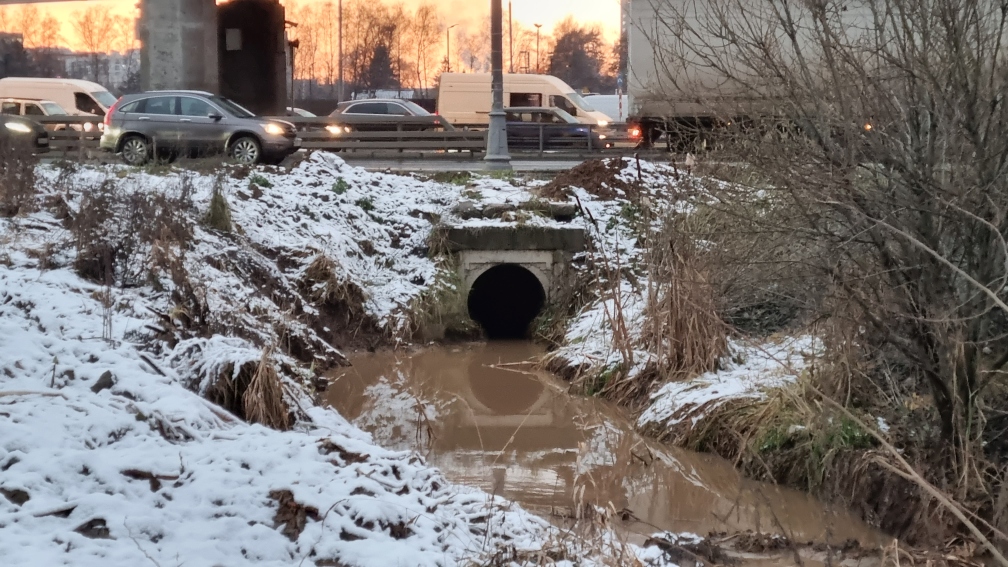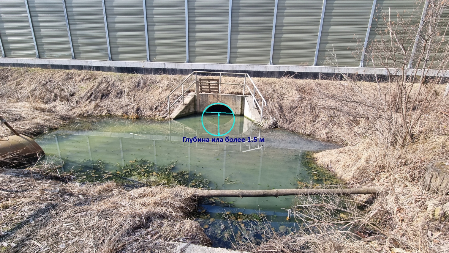 Уровень ила в трубе более 1.5 м. В таком болоте может утонуть ребенок. Вылезти самостоятельно не получится. К сожалению после прочистки экскаватором в ноябре 2025 г. уровень не снизился.
